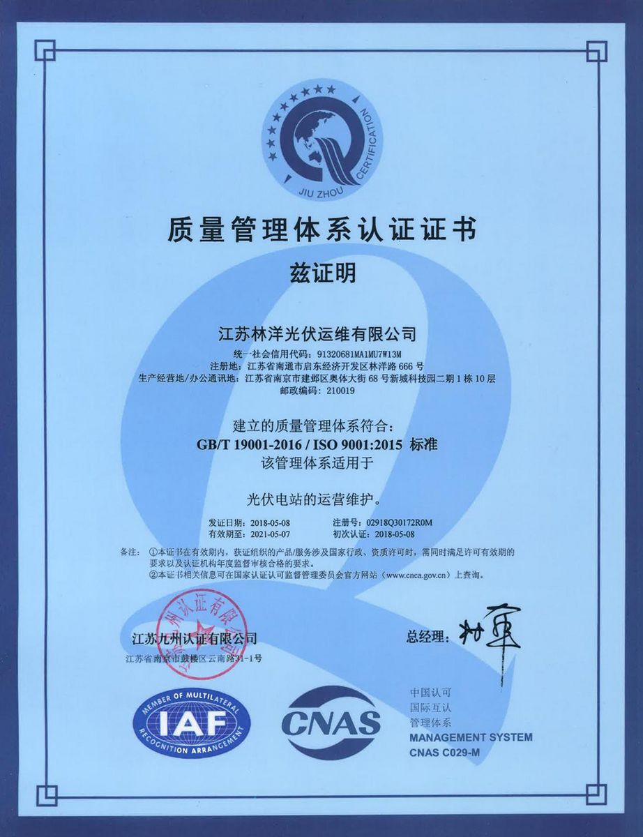 江苏尊龙凯时光伏运维有限公司于2016年9月9日成立,是江苏尊龙凯时能源股份有限公司(601222.SH)的全资子公司。公司主要业务包括:光伏、风力、储能电站的安全管理、运行、检修、试验检验;智能集控云平台的开发、接入、运营;资产管理;碳资产及绿电服务等。